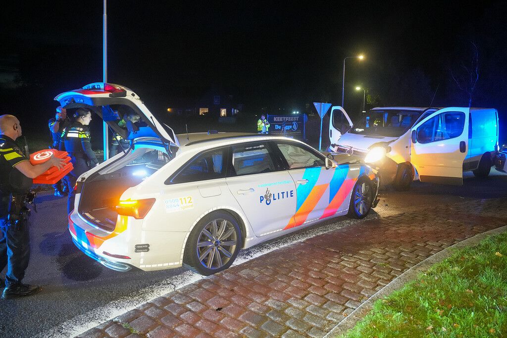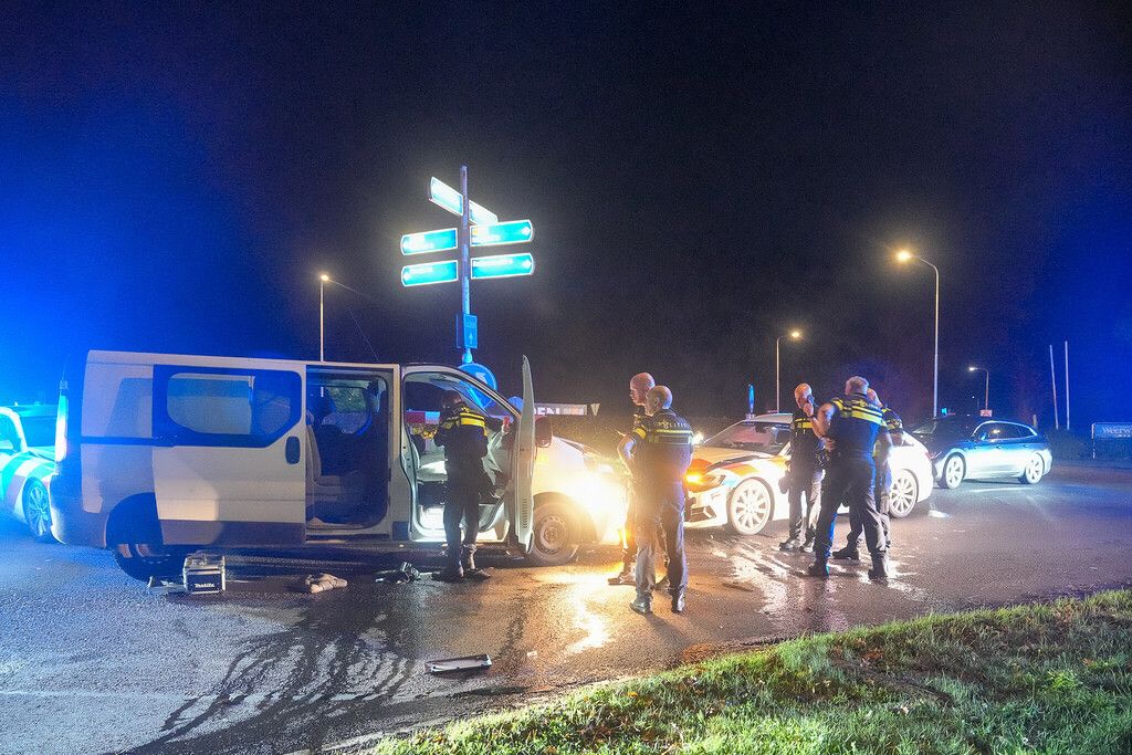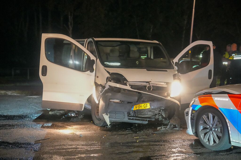 “De bestelbus kwam daar in botsing met de politievoertuigen,” aldus Van Gijssel. “De verdachte raakte niet gewond en is aangehouden.” De agenten konden zelf uit hun zwaarbeschadigde politiewagens stappen. Ze liepen letsel op, maar niet ernstig.