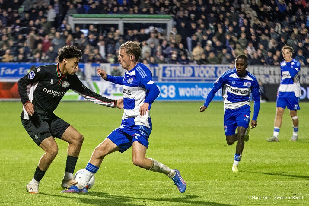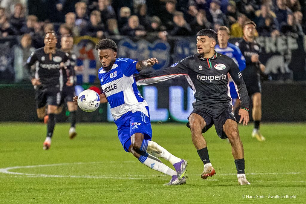 PEC Zwolle heeft zaterdagavond een punt overgehouden aan het thuisduel met NEC Nijmegen. De bezoekers kwamen tot tweemaal toe op voorsprong, maar de mannen van Henry van der Vegt knokten zich terug naar een punt (2-2), dankzij doelpunten van Jamiro Monteiro en Koen Kostons.