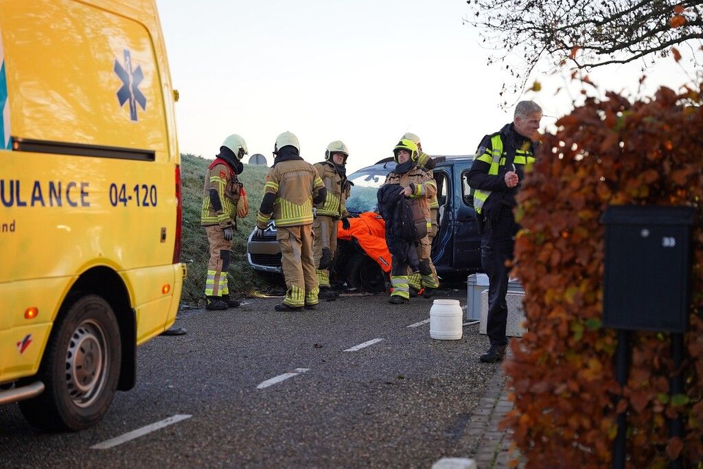Een van de busjes raakte van de dijk en kwam onderaan tot stilstand. De brandweer heeft één inzittende moeten bevrijden, omdat die bekneld zat.