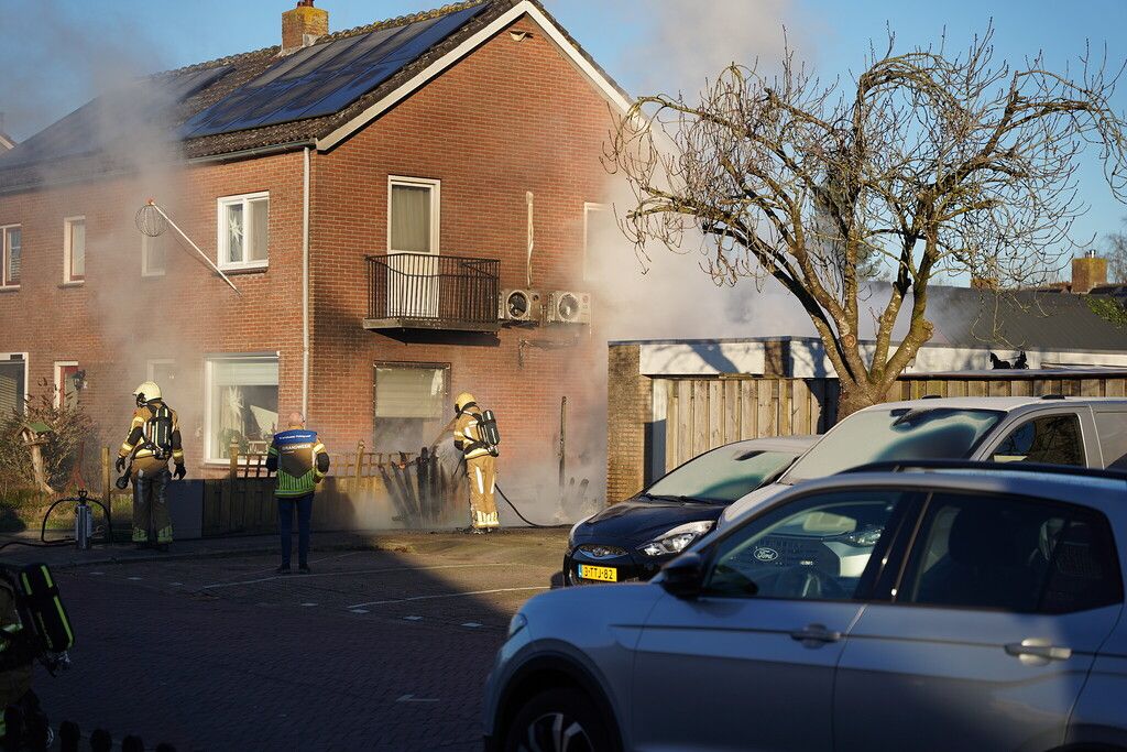 Door de hitte sprongen meerdere ramen van een nabijgelegen woning. Het vuur dreigde over te slaan naar het pand, maar de brandweer wist dat op het laatste moment te voorkomen. De brand was snel onder controle.