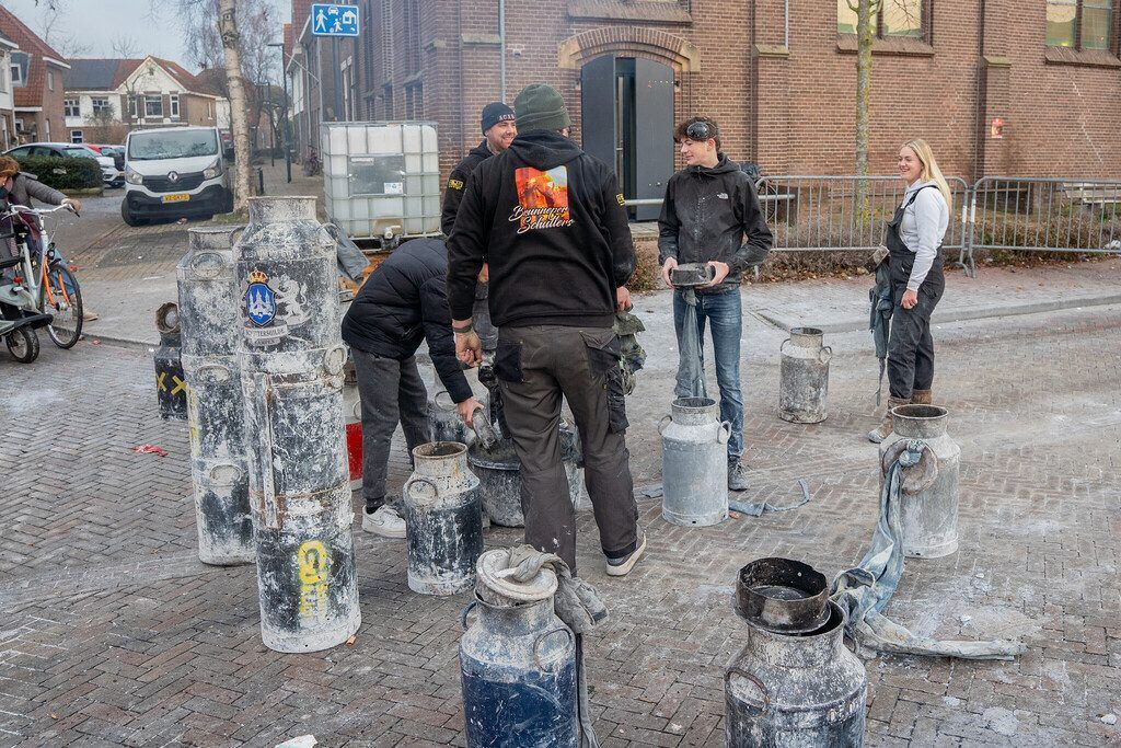 In Kampen is gisteren een recordpoging gedaan bij het traditionele melkbusschieten. Rond 10.00 uur ging het evenement van start op het Berghuisplein, waar dit jaar 103 melkbussen klaar lagen om afgeschoten te worden. Vorig jaar ging het nog om 70 melkbussen.