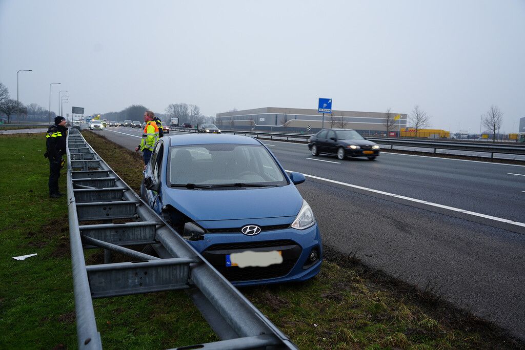De auto liep daarbij forse schade op aan de rechtervoorzijde en is afgesleept. Eén rijstrook van de A28 werd tijdelijk afgesloten.
