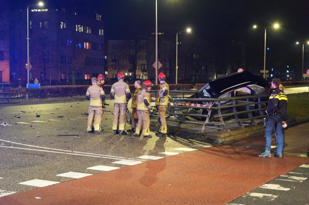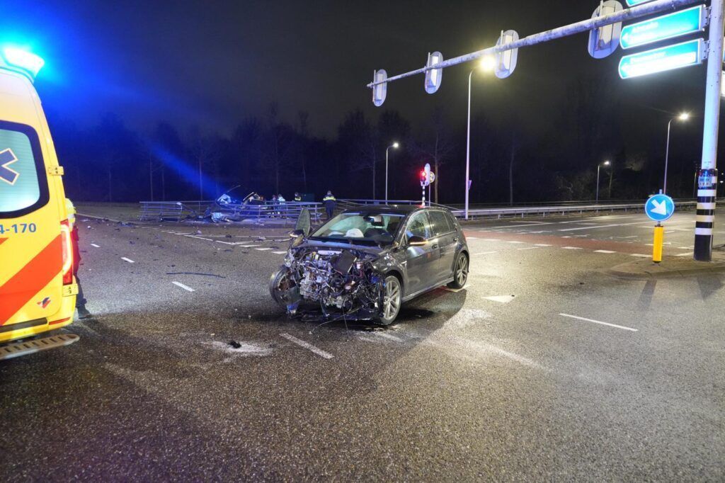 Door de aanrijding raakte één van de voertuigen van de weg, reed door een hekwerk en kwam bovenop het rooster van de fietstunnel tot stilstand. De auto zakte daarbij deels door het rooster heen en bungelde boven de tunnel.