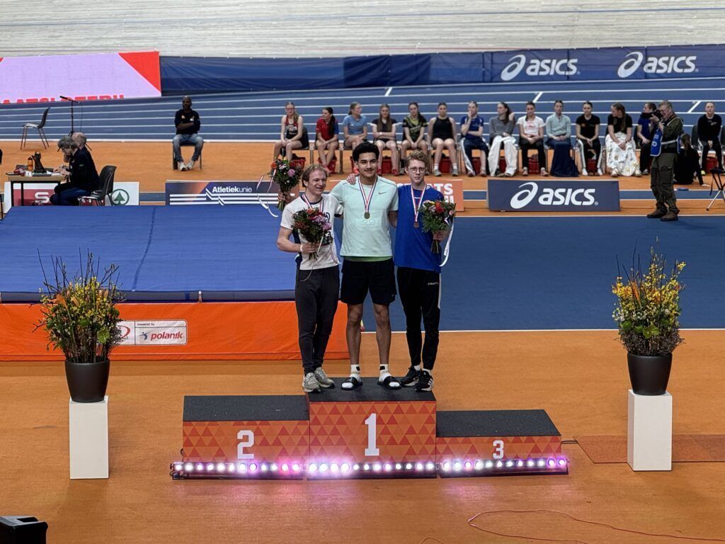 William Veenendaal (16) was de grote verrassing bij de U18 jongens. Op het hoogspringen begon hij met een persoonlijk record van 1,81 meter. Met een fantastische reeks sprongen verbeterde hij zijn PR met maar liefst 10 centimeter tot 1,91 meter. Deze prestatie leverde hem de bronzen medaille op. Ook op de 60 meter horden liet William zien dat hij in topvorm is, met een tijd van 8,85 seconden.